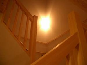リビングの吹き抜けから降りそそぐ日差しは