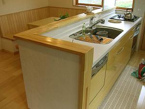 システムキッチンには奥様の夢だった食洗機&オーブンレンジを組み込み