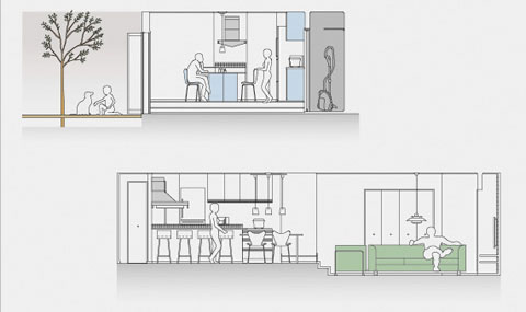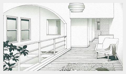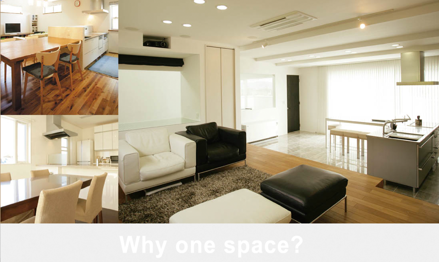 キッチンからリビング、そしてフルオープンのサッシを開けばデッキまでもがひと続き。 そんな開放的な暮らしの中にも、それぞれのシーンごとを柔らかに分けるスキップフロアーを取り入れ、 落ち着きある空間としての快適性を持たせています。
