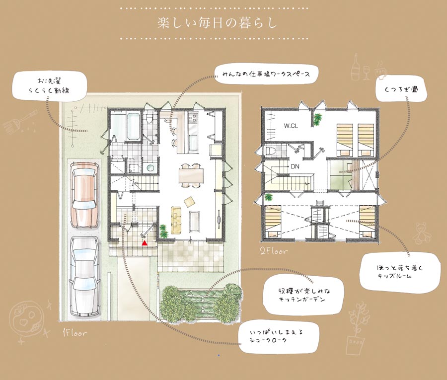 漆喰と木の存在感。外構の緑が似合うかわいらしいわが家。